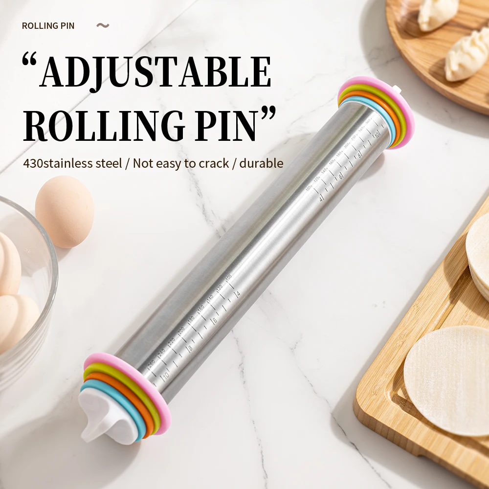 Achieve perfectly even dough every time with this 13.78-inch stainless steel adjustable rolling pin. Designed with removable thickness rings, it allows you to control dough height precisely for consistent baking results.